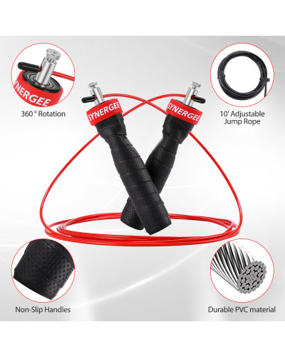 Скакалки для швидкісних стрибків від Synergee покращать вашу гру на подвійному підйомі та зроблять RX-тренування з кросфіту більш досяжними, ніж будь-коли. Завдяки плавному обертанню та швидкому повороту ви швидко опинитесь на вершині таблиці лідерів! Наступного разу, коли ви зробите Енні, ви залишите своїх конкурентів в пилюці.