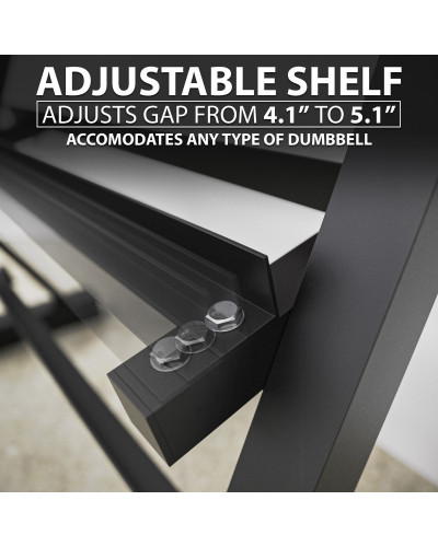 Наша мала стійка для гантелей Synergee має розміри 38,5" (Д) х 19" (Ш) 36" (В), а велика стійка - 46,6" (Д) х 19" (Ш) 36" (В). Цей пакет поставляється тільки зі стійкою для гантелей. Є три яруси регульованих полиць; кожна полиця має довжину 33,5" і тримачі для гантелей, які можна встановити на відстані від 4,1" до 5,1" одна від одної. Тримайте гантелі так, щоб їх було легко знайти, впорядкувати та не падати з ніг. Тримайте тренажерний зал в порядку і скоротіть час, який ви витрачаєте на пошук необхідного обладнання. Зробіть все це з цією стійкою!