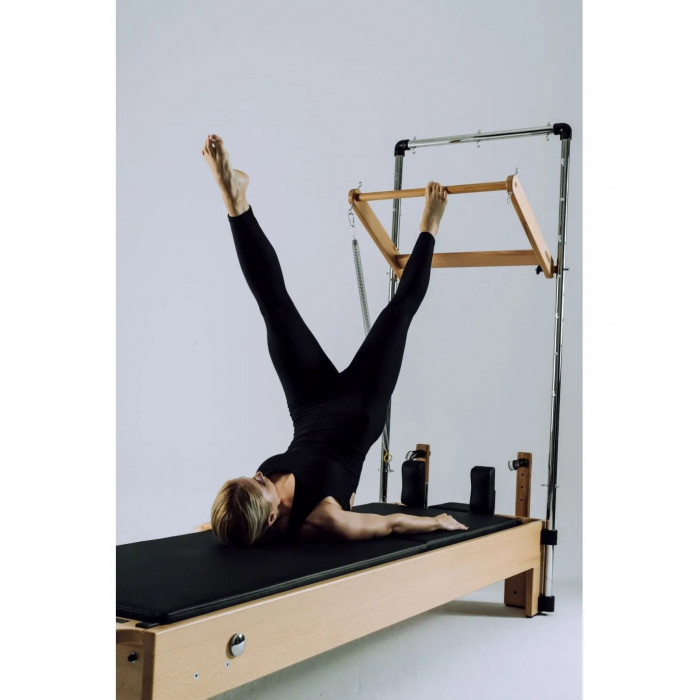 Tower Reformer ROUND — це професійне багатофункціональне обладнання, яке поєднує можливості класичного реформера та тренувальної вежі. Воно дозволяє виконувати широкий спектр вправ, підтримує роботу з опором та забезпечує універсальність використання у студіях пілатесу. Конструкція з натуральної деревини, плавний хід каретки та стабільна башта забезпечують комфорт, безпеку та ефективність тренувального процесу.